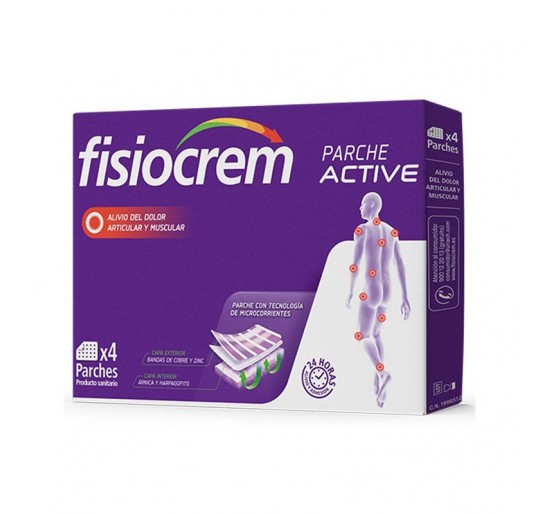 Fisiocrem Parche Active 4 Unidades. Solución efectiva indicada para el tratamiento muscular y articular. Su exclusiva tecnología de microcorrientes actúa aliviando dolores musculares, articulares y contracturas de diversas naturalezas.