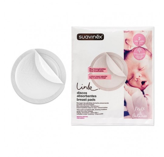 Los discos absorbentes colocados entre las mamas y el sujetador, constituyen un complemento ideal para mantener los pechos secos entre toma y toma, previniendo que la zona se mantenga húmeda con la habitual perdida de leche y evitando las típicas manchas en la ropa.
